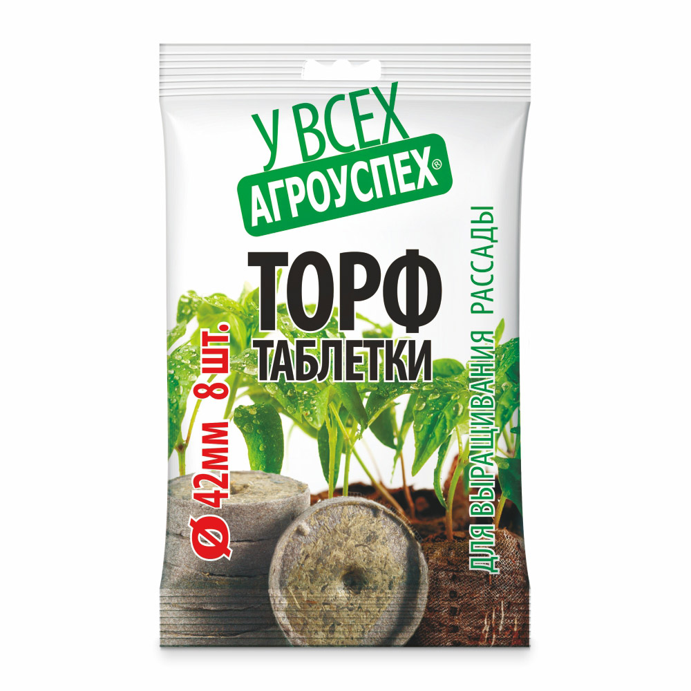 Таблетки торфяные в пакете 42мм 8шт пакет (40) Агроуспех