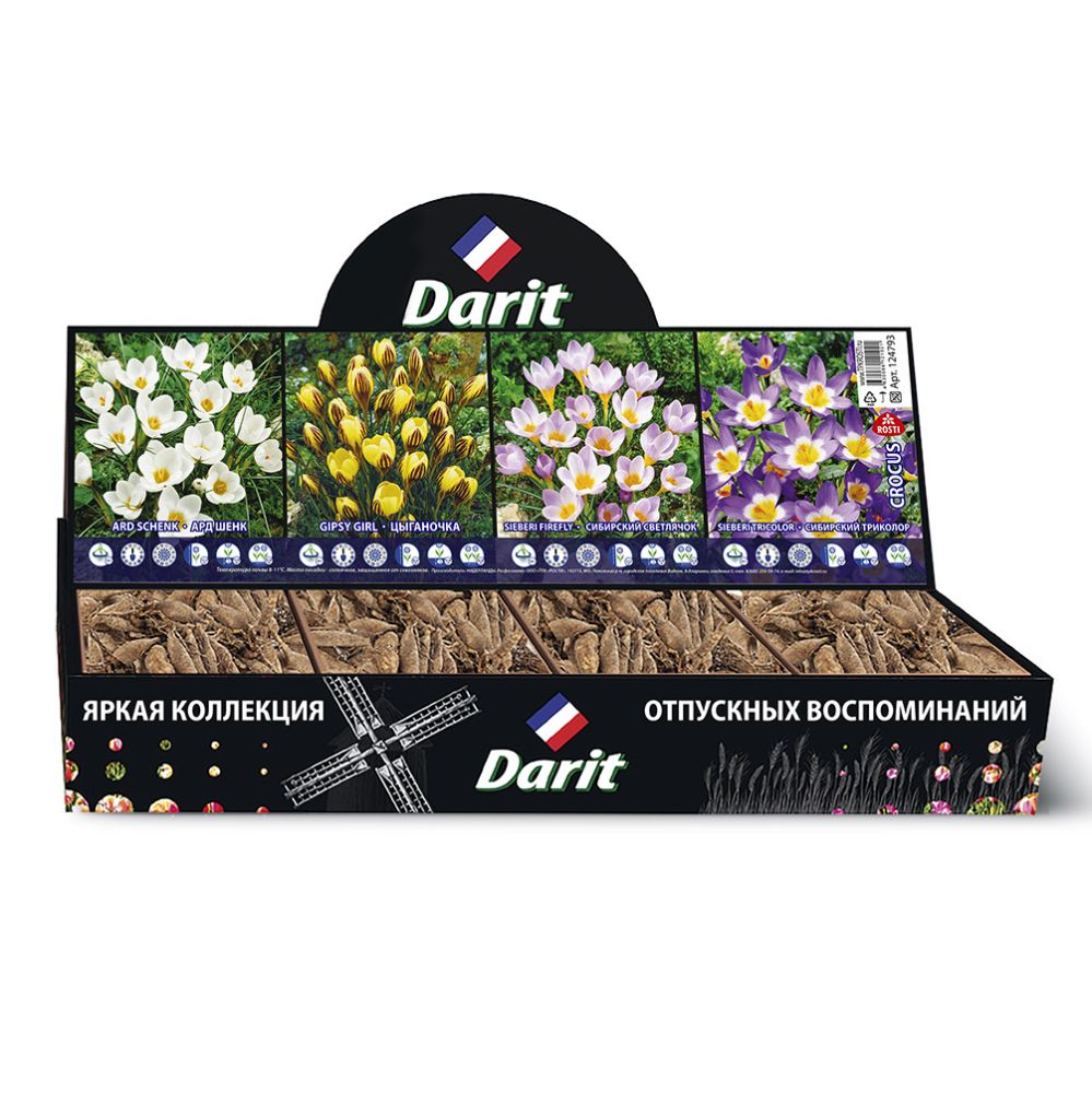 Шоубокс 182 КРОКУС Жанна Д'Арк/Рубиновый гигант 2 вида по 100шт, ГИАЦИНТ Розовая жемчужина/Вудсток 2 вида 35шт по Darit
