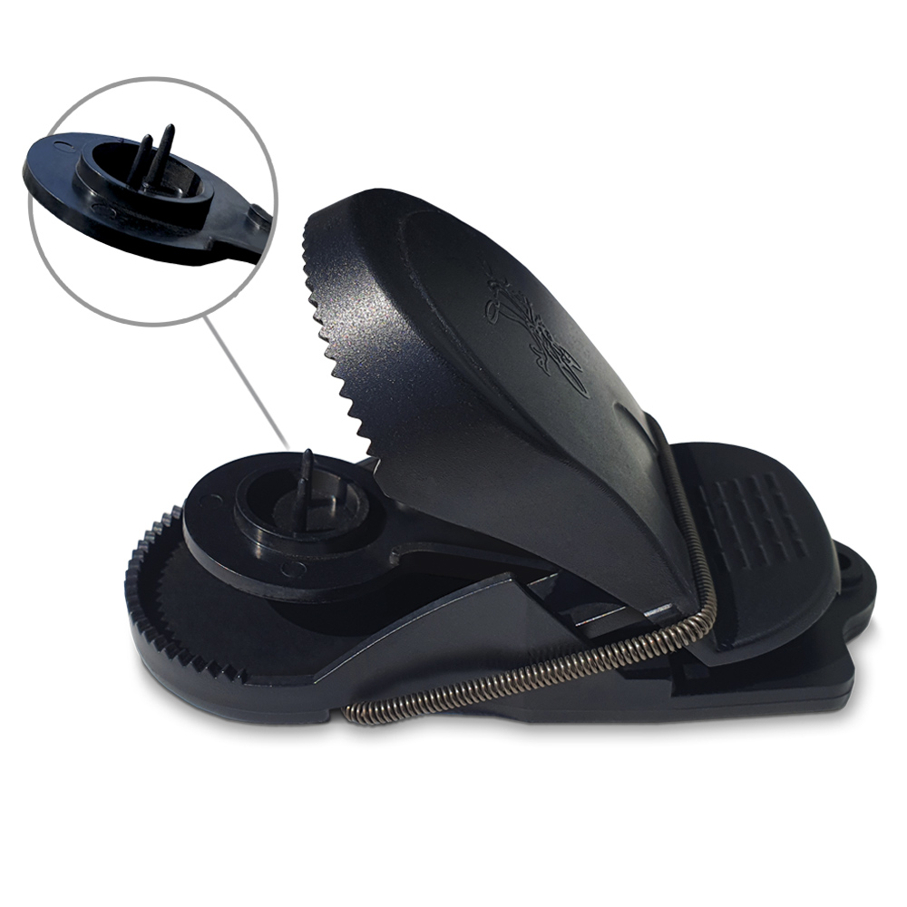 ПРИМЕНЕНИЕ: Достаточно лишь одного нажатия на заднюю часть мышеловки, чтобы открыть её и привести в рабочее положение. Благодаря этому же простому механизму очень легко избавиться от пойманной мыши. Расположить приманку на специальный «язычок» внутри мышеловки. Зафиксировать приманку на специальные пластиковые штырьки расположенные на «язычке» (чтобы приманка не потерялась при резком срабатывании закрывающего механизма).