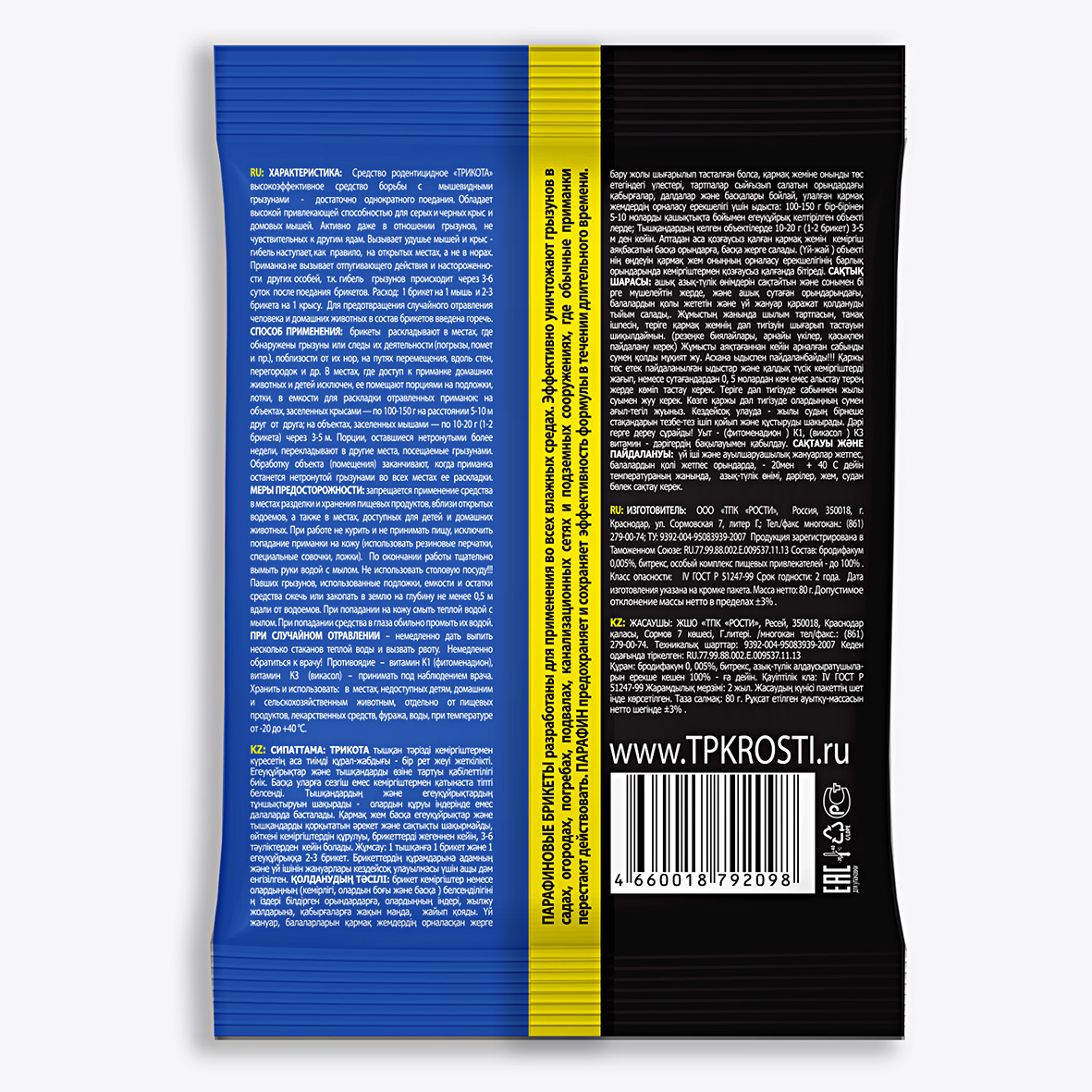 Средство от крыс и мышей парафиновый брикет ТРИКОТА 8 доз 80г (40) Рубит