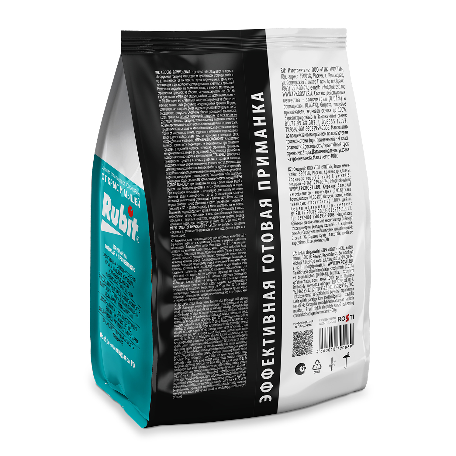 Бренд Rubit Штук в упаковке 25 Действующее вещество варфарин, бромадиолон Назначение препарата (тип вредителя) от комнатных вредителей, от крыс, от мышей, от мышей-полевок, от садовых вредителей Документы