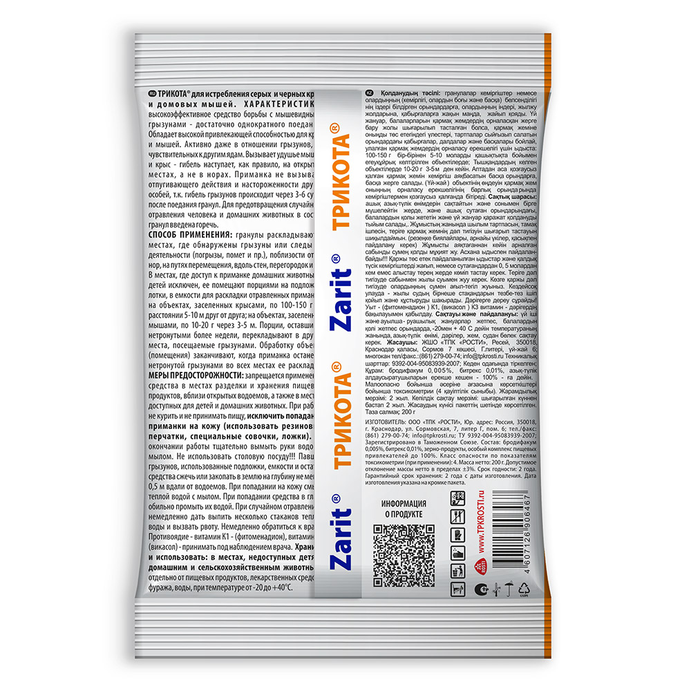 Средство от крыс и мышей гранулы ИСТРЕБИТЕЛЬ ТРИКОТА 200г (35) Зарит