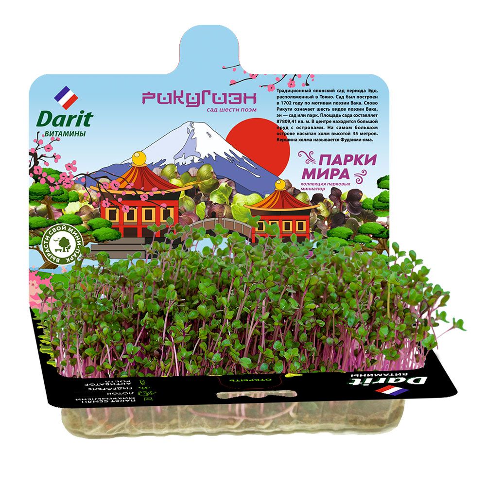 1. Откройте по линии перфорации лоток и загните, чтобы картонная крышка стала красочным фоном для Вашего будущего мини-сада. В коллекции Darit есть 6 различных парков мира. Соберите всю коллекцию на подоконнике!