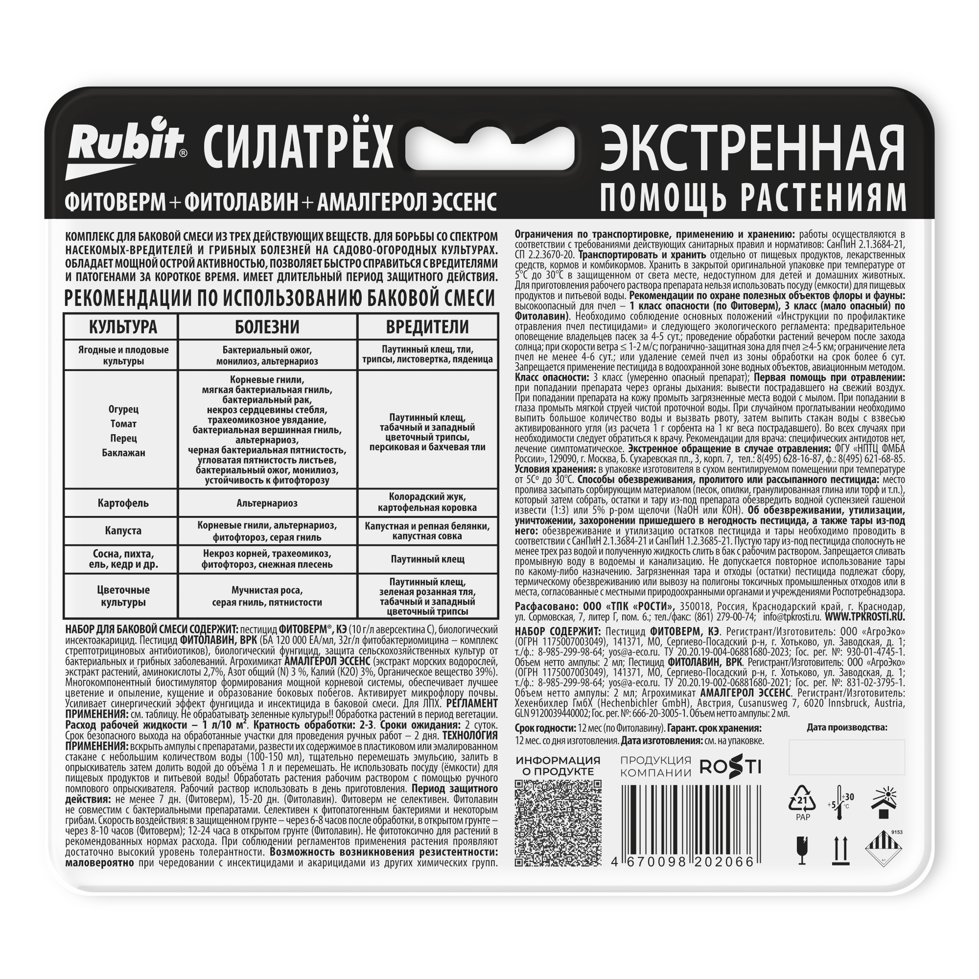 Силатрёх: инсекто-фунго-стимулятор, набор для баковой смеси Биоспасатель - это уникальное средство для защиты ваших растений от вредителей и болезней. Благодаря своему составу, включающему фитоверм, фитолавин и этамон, этот продукт обеспечивает надежную защиту от клещей, насекомых, тли и других вредителей.