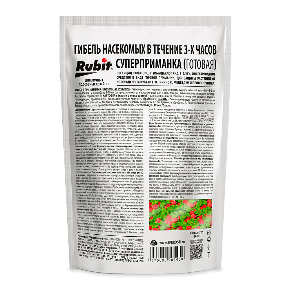 Средство от медведки, проволочника, колорад. жука РОФАТОКС 240г дой-пак (30) Рубит