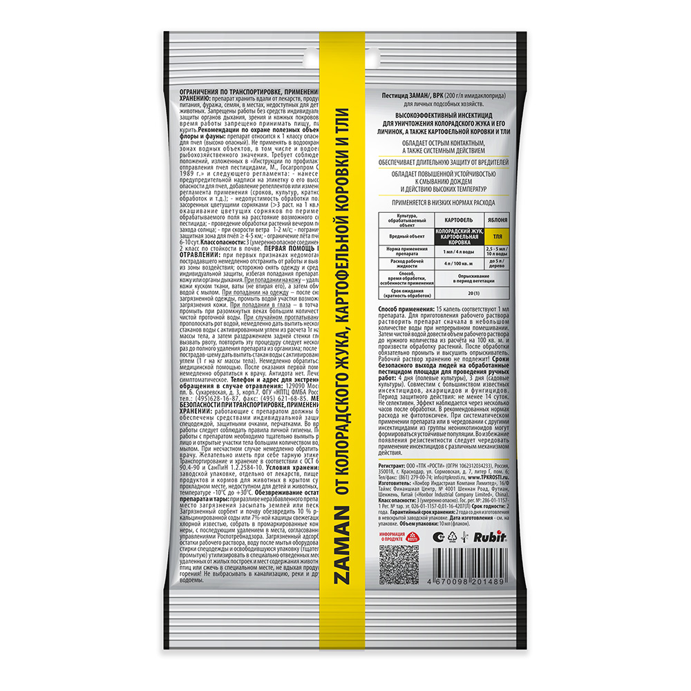 Средство от колорад. жука, тли и других вредителей ЗАМАН 10мл (50) (ПАКЕТ) Рубит
