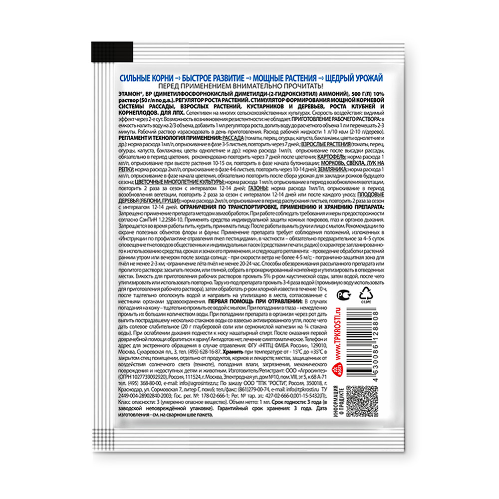 СТИМУЛЯТОР ФОРМИРОВАНИЯ МОЩНОЙ КОРНЕВОЙ СИСТЕМЫ РАССАДЫ, ВЗРОСЛЫХ РАСТЕНИЙ, КУСТАРНИКОВ И ДЕРЕВЬЕВ, РОСТА КЛУБНЕЙ И КОРНЕПЛОДОВ. ДЛЯ ЛПХ. ПРИГОТОВЛЕНИЕ РАБОЧЕГО РАСТВОРА: в емкость налить воду на 2/3 объема, добавить необходимое количество регулятора роста, долить воду до расчетного объема и перемешать 2-3 минуты. Рабочий раствор необходимо израсходовать в день приготовления. РЕГЛАМЕНТ ПРИМЕНЕНИЯ: РАССАДА (томаты, перец, огурцы, капуста, баклажаны, цветы однолетние и др.): норма расхода 1 мл/л, опрыскивание в фазе 3-5 листьев, повторить через 7 дней. ЗЕМЛЯНИКА: норма расхода 1 мл/л, опрыскивание в фазе начала цветения, обязательно повторить после сбора урожая для закладки рожков будущего сезона. ЦВЕТОЧНЫЕ МНОГОЛЕТНИЕ КУЛЬТУРЫ: норма расхода 1 мл/л, опрыскивание в период возобновления вегетации, повторить 2 раза за сезон с интервалом 12-14 дней. Характеристики