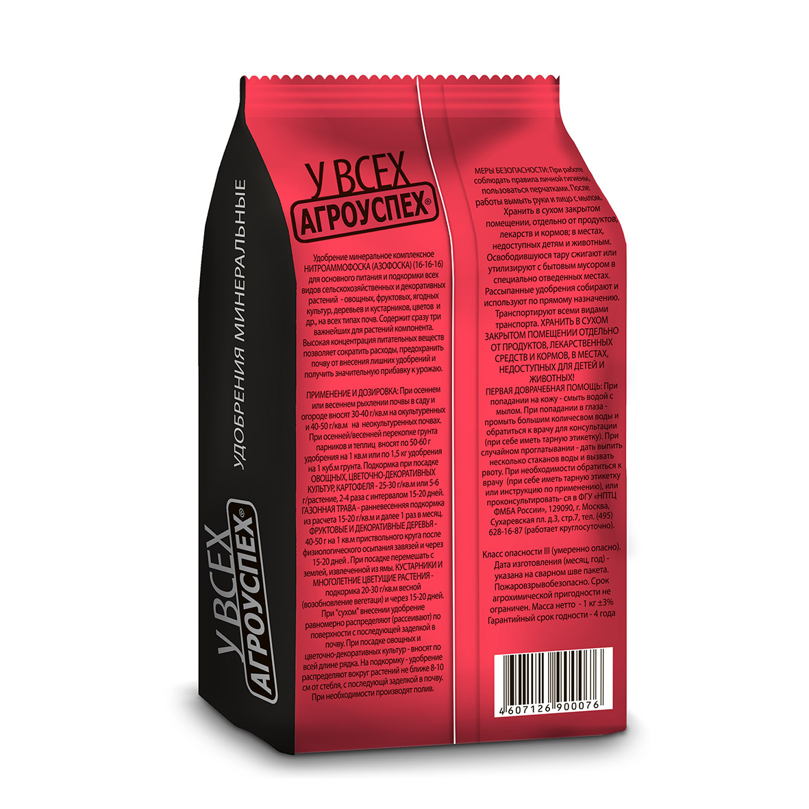 Удобрение НИТРОАММОФОСКА (АЗОФОСКА) 1кг (15) Агроуспех