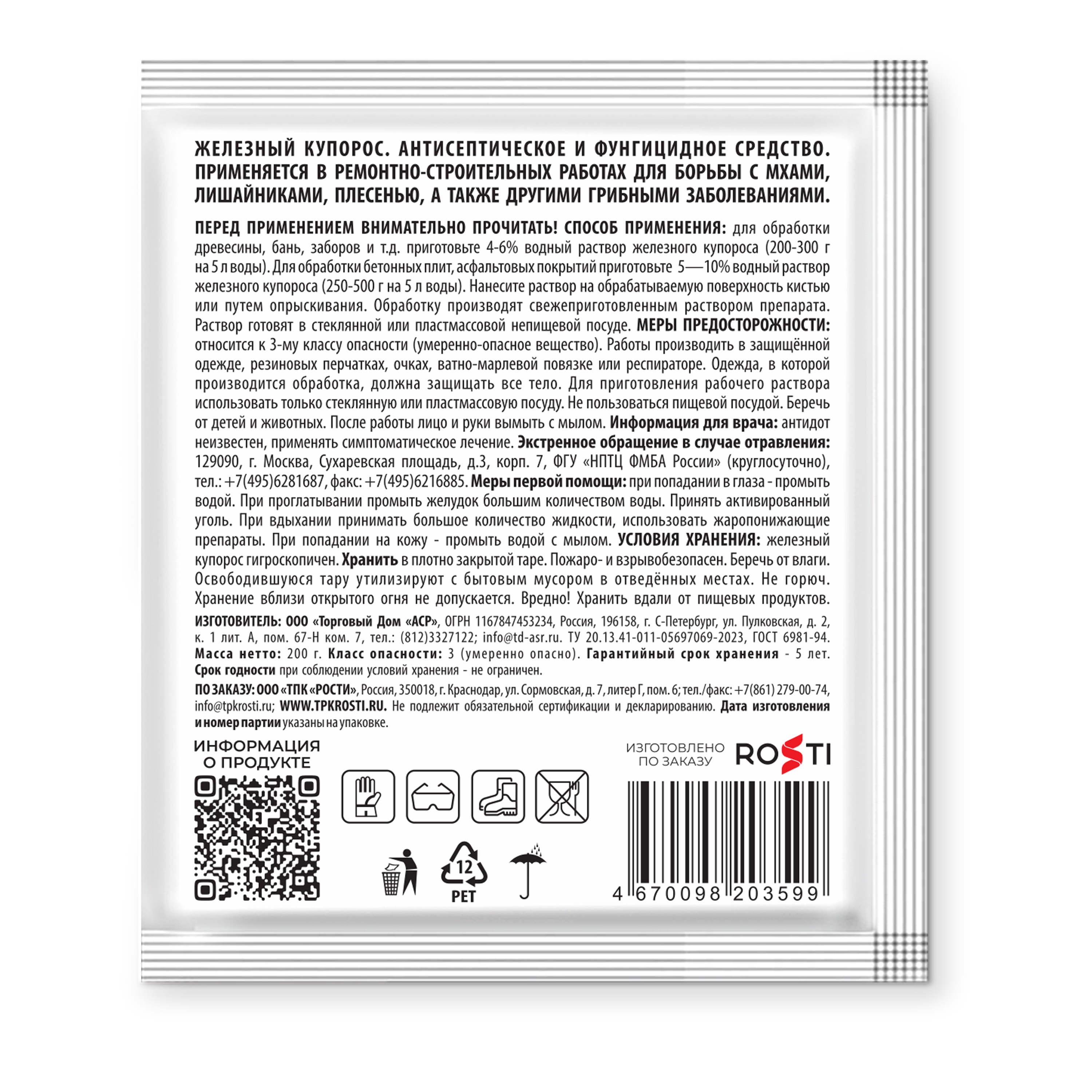 Средство от болезней растений ЖЕЛЕЗНЫЙ КУПОРОС 200г (30) Рубит