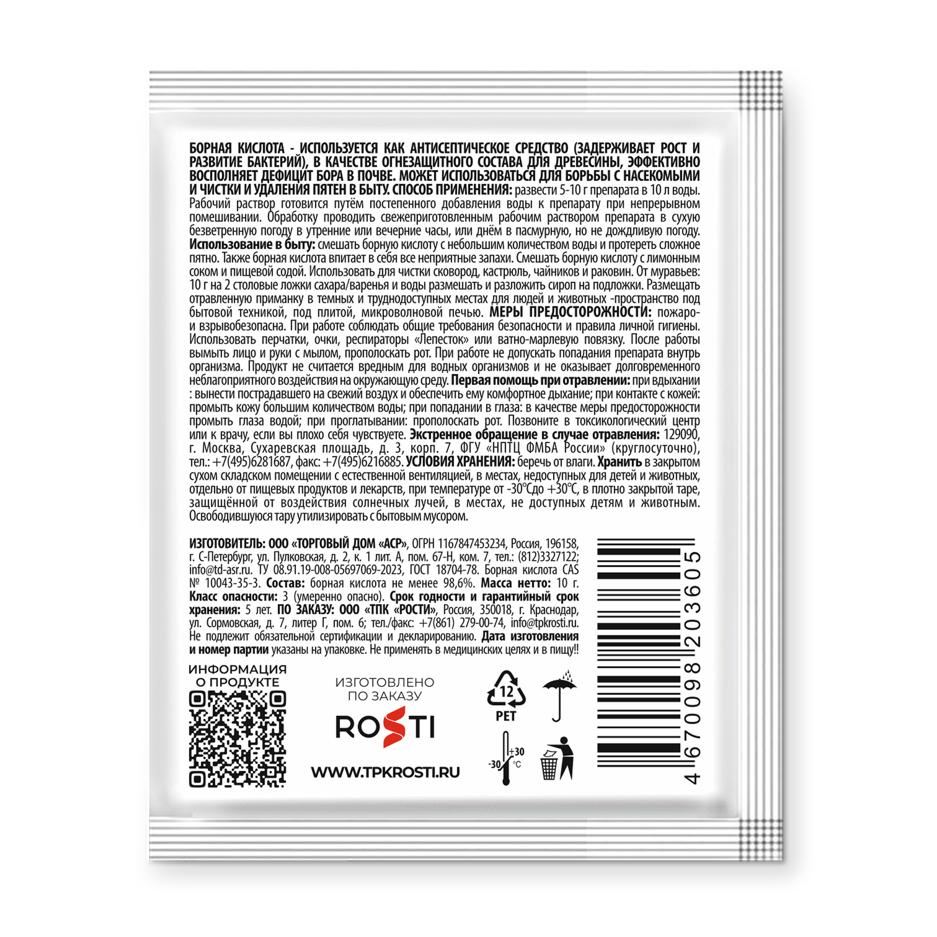 Удобрение Борная кислота пакет 10г (300) Рубит