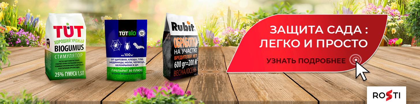 5. Обработка деревьев и кустарников от вредителей и болезней. При температуре от +5°С обработайте растения раствором ПРЕПАРАТ 30 ПЛЮС. Для акарицидного эффекта (обработки от клещей) добавьте в баковую смесь Rubit ЗАМАН. |